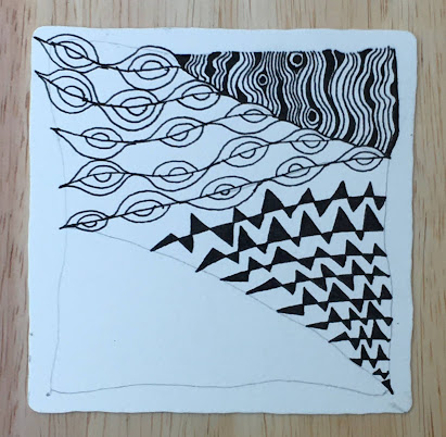 I have used the word "tile" many times in this blog without defining it, or giving you directions in how to create one, so this blogpost is going to be all about "tiles." In the Zentangle Language, a "tile" is anything you draw patterns, called 'tangles" on...It could be a piece of paper, a t-shirt, or a vehicle! In this blog, some of the "tiles" have been created on a square of watercolor paper that is 3.5 x 3.5 inches square, as pictured here. The founders of zentangle chose that size because it fits in the back pocket of a pair of jeans. The first tiles had square corners, until one tile stayed in the back pocket of a pair of jeans that went through the laundry. After going through the washing machine and the dryer, the tile survived, but not the square corners. As a result, official Zentangle tiles have rounded corners. You can purchase official Zentangle Tiles at www.zentangle.com.